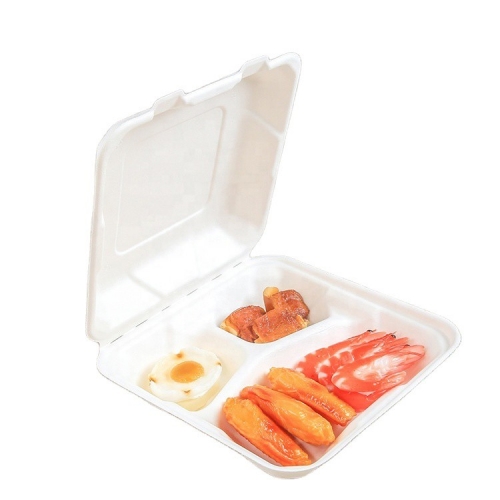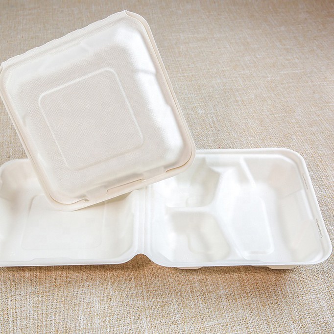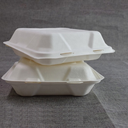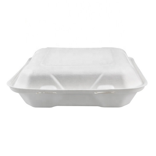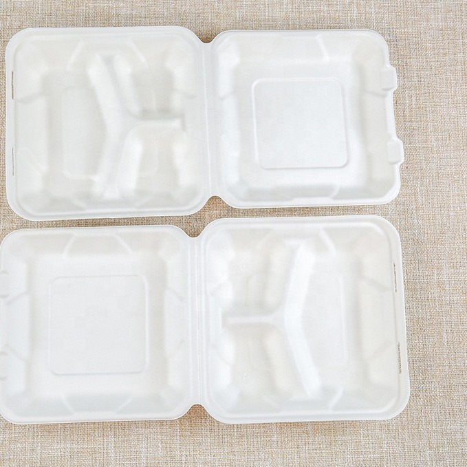 Biodegradable Bagasse Clamshell Box တခါသုံး ပန်းကန်ပြား အရည်အသွေးမြင့် ကြံအစားအစာ ကွန်တိန်နာ